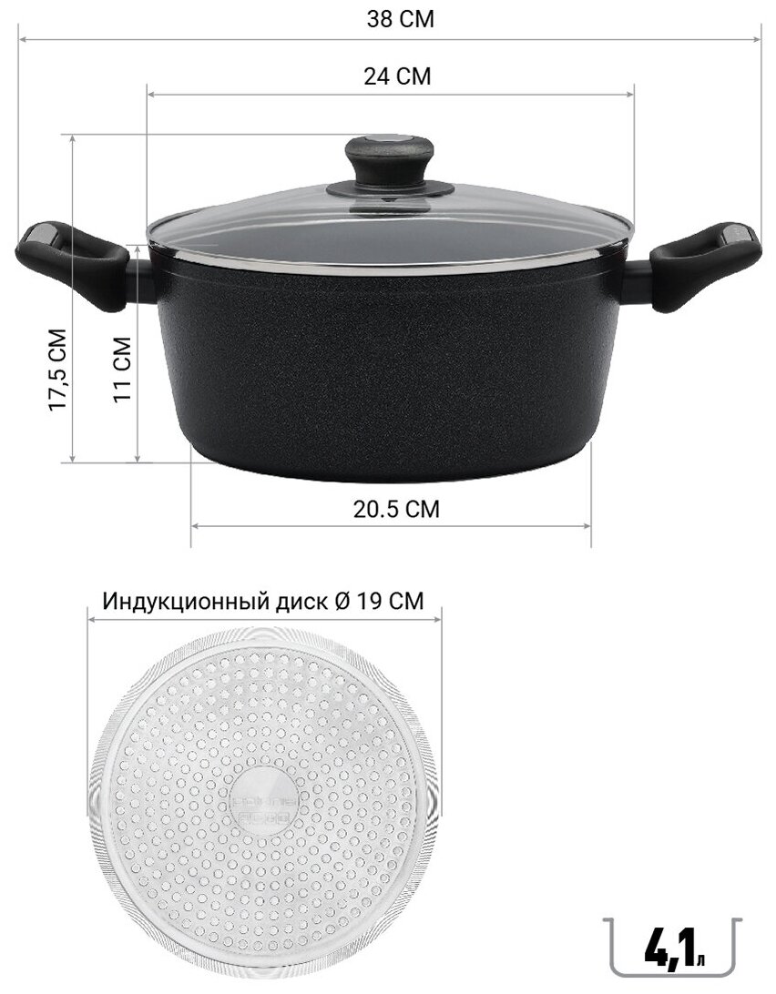 Лучшие цены. DIAMANT-3X PRO Инновационное 3-слойное антипригарное покрытие с микровкраплениями. Толщина алюминия - 3,5 мм. Ручки - эргономичные бакелитовые ручки с покрытием "Soft touch". Материал - кованый алюминий. Термостойкое внешнее покрытие. Типы плит - все, включая индукцию. Гарантийный срок - 2 года. Индивидуальная упаковка – открытый картонный короб. Изделие Кастрюля с крышкой Материал Кованый алюминий Толщина стенок, мм 3.5 мм Ручки Эргономичные бакелитовые ручки с покрытием Soft Touch Покрытие DIAMANT. Магазины в вашем городе.