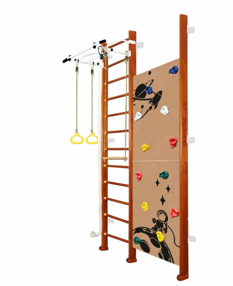 Шведская стенка Kampfer Jungle Wall Boy (№2 Ореховый Высота 3 м белый турник)