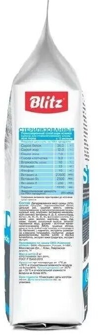 Блитц корм для кошек стерилизованных с Курицей STERILISED CATS 2 кг , шт, BCD10-1-02000