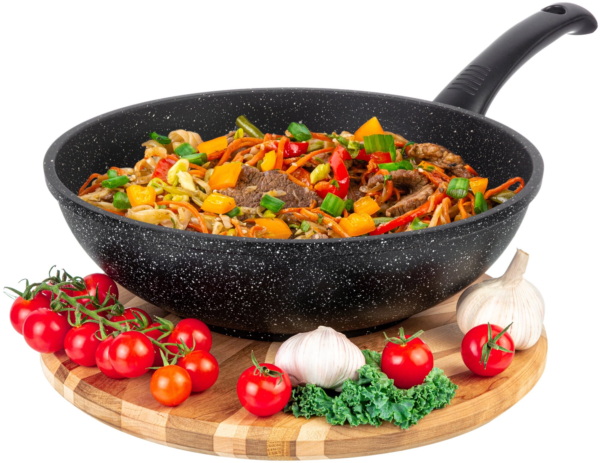 Сковородка Сковорода ВОК Elan Gallery гармония вкуса черный мрамор, с крышкой, с несъёмной ручкой, 28 см