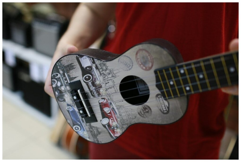Лучшие цены. Укулеле TERRIS PLUS 70 CARS - модель с рисунком-подборкой красивейших автомобилей прошлого. Прекрасные ретрокары из разных уголков планеты - Италии, Франции, Англии. Эта модель укулеле элегантна и сдержана как и шикарные машины, изображенные на ней. Эта укулеле прекрасно подойдёт как для обучения музыке, так и в качестве второго инструмента, который можно брать с собой на природу, путешествия, фестивали. Она замечательно подойдёт и для ребёнка или просто если это ваш первый музыкальный инструмент. Магазины в вашем городе.