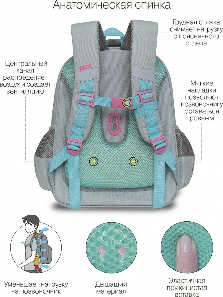 Лучшие цены. Уже с начальных классов детям нужно носить в школьном рюкзаке книги, тетради и сменку. Нагрузки большие и GRIZZLY помогает с ними справляться. Ранец серии RAz рассчитан на рост от 125 до 135 см. В него поместятся все школьные принадлежности. Основное отделение разбито на три отсека: для книг, тетрадей и папок А4. В дополнительное помещается сменка (есть три кармашка для мелочей). В боковых можно носить воду или перекус. Каждый предмет на своем месте. Магазины в вашем городе.