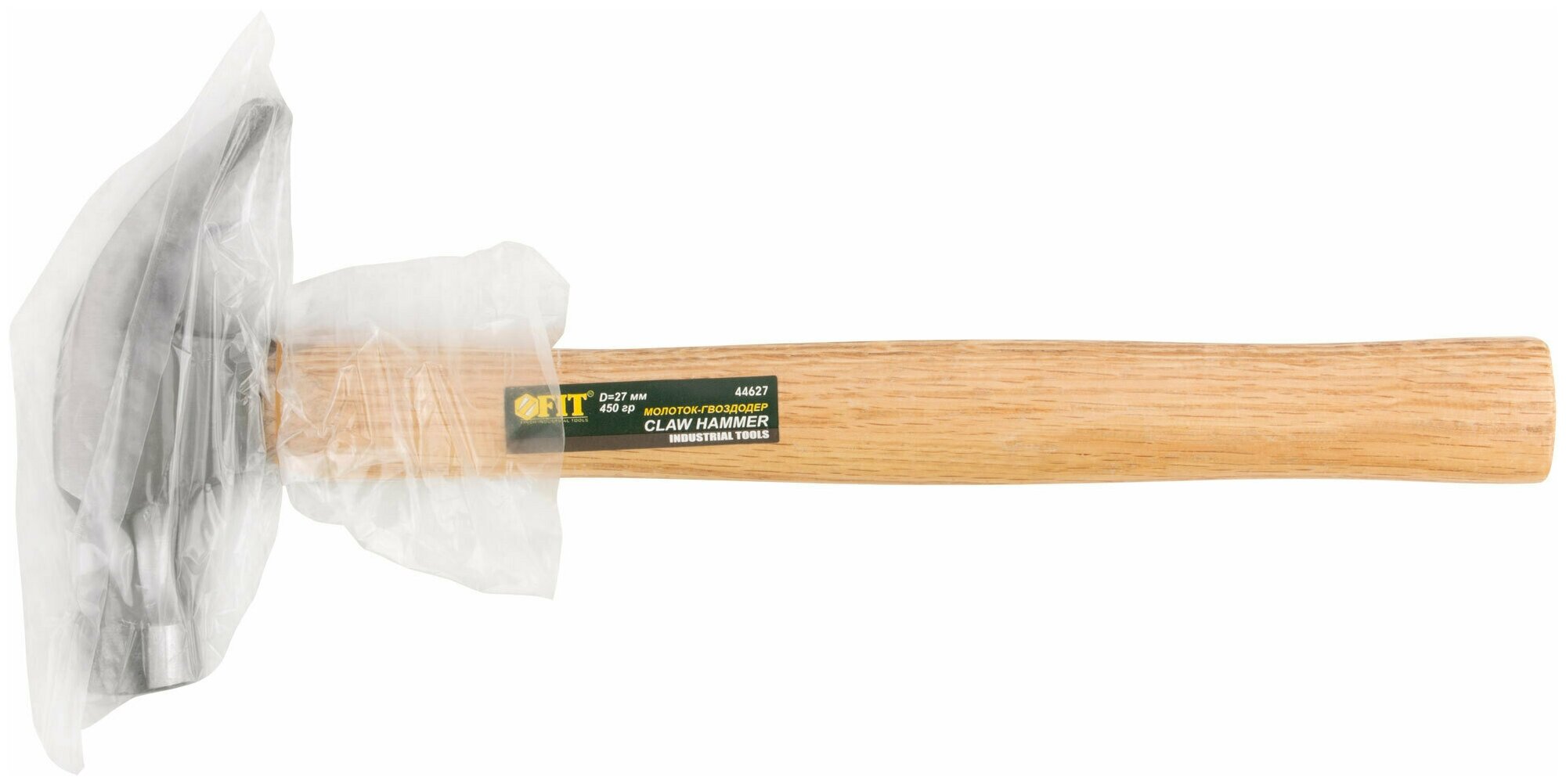 Молоток-гвоздодер, деревянная ручка 27 мм, 450 гр. Fit