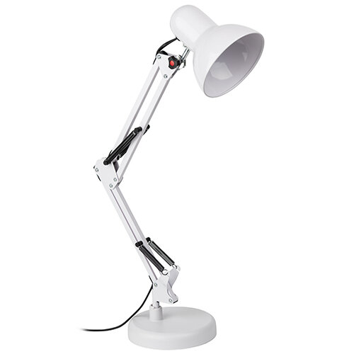 Лучшие цены. Описание Настольный светильник ЭРА N-214-E27-40W-W классического дизайна может использоваться с разными источниками света - лампой накаливания, компактной люминесцентной лампой (КЛЛ) или светодиодной (LED) лампой. Выключатель на проводе. Крепится на струбцину. Высота плафона регулируется двухсекционной сгибающейся стойкой, направление света - поворотом и наклоном плафона в любом направлении. Магазины в вашем городе.
