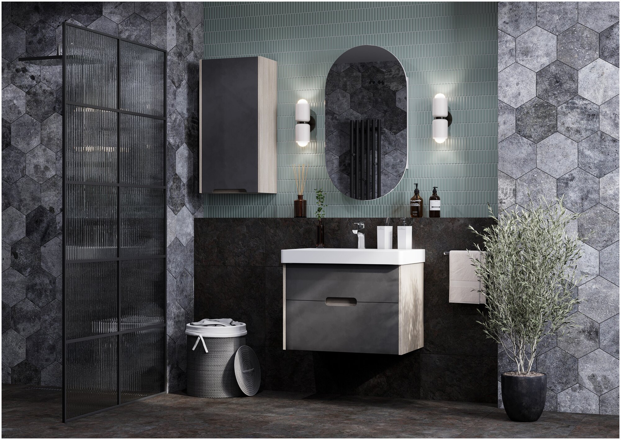 Тумба-умыв. "Оливия 55" Грей/Дуб Ойстер 1A254201OLUG0
