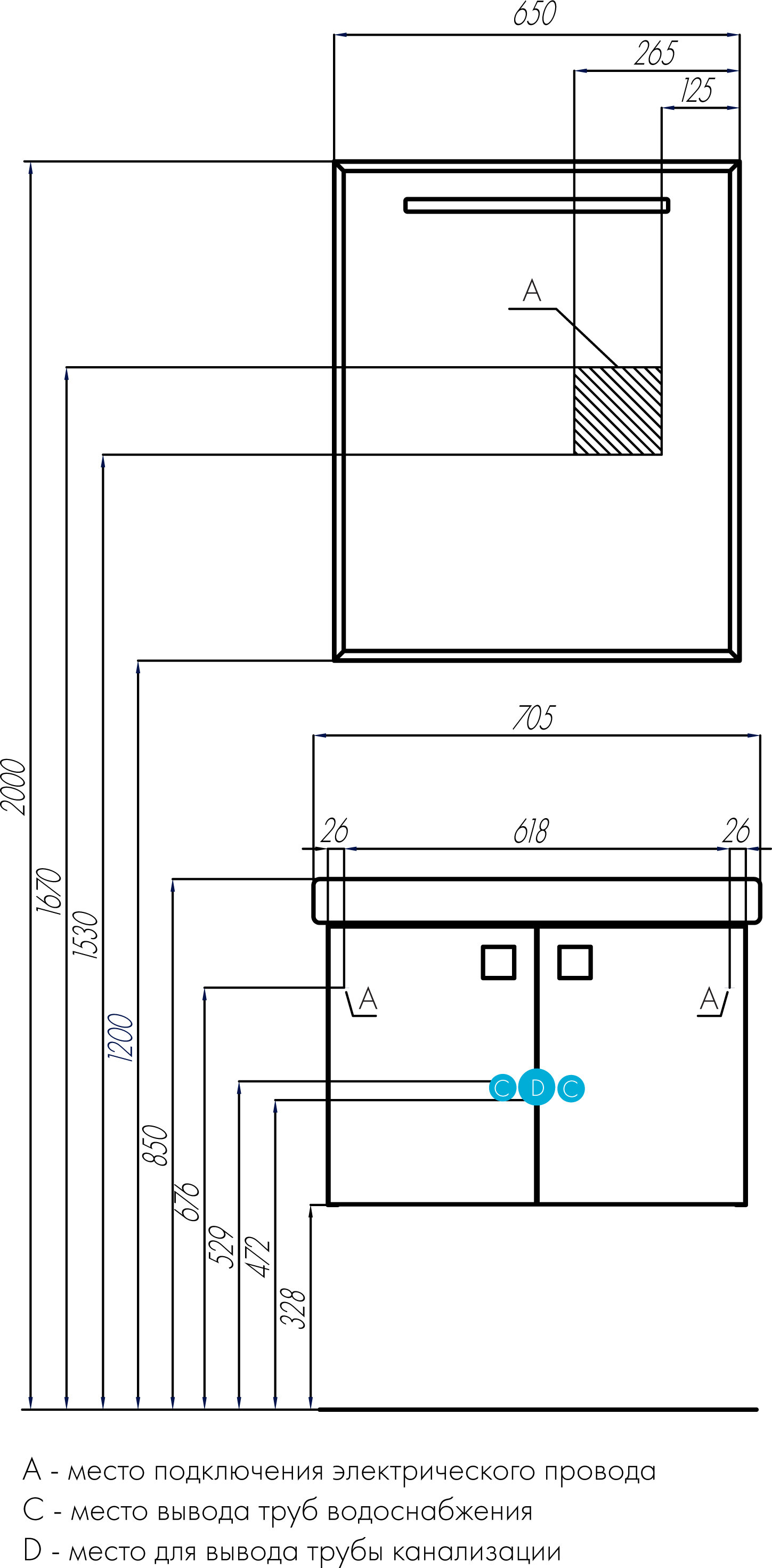 | Расположение раковины | по центру |