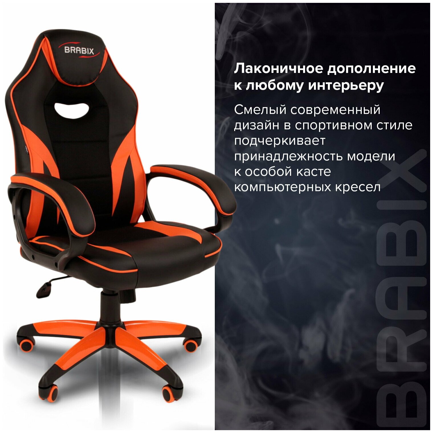 Кресло компьютерное BRABIX Accent GM-161 TW/экокожа, черное/оранжевое