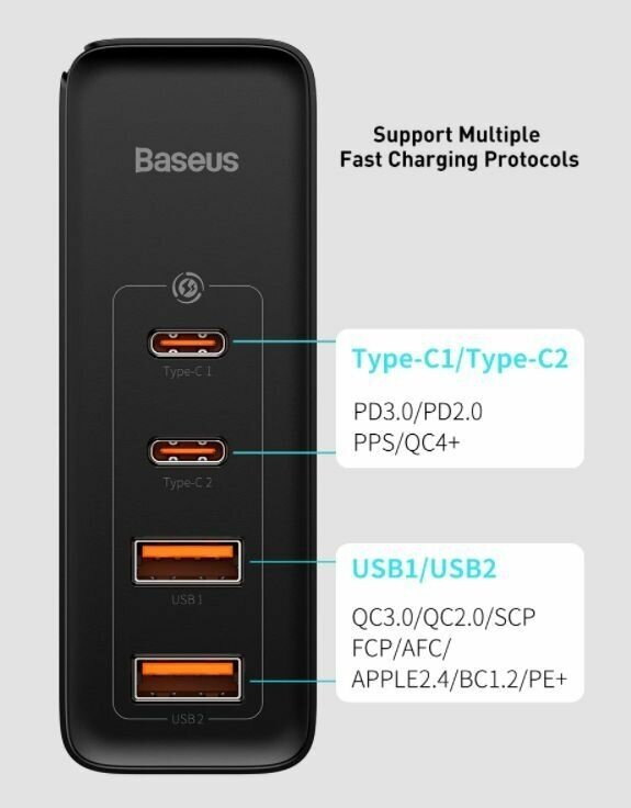 Лучшие цены. Быстрое зарядное устройство Baseus GaN2 Pro PPS 100 Вт 2x USB / 2x USB Type C Quick Charge 4+ Power Delivery SCP FCP AFC (нитрид галлия). Сложно представить работу электронных устройств без зарядных устройств. Всем, кто хочет сократить процесс зарядки аккумулятора, сделать его более эффективным и в то же время экономным, стоит интересоваться гаджетами нового поколения. Магазины в вашем городе.
