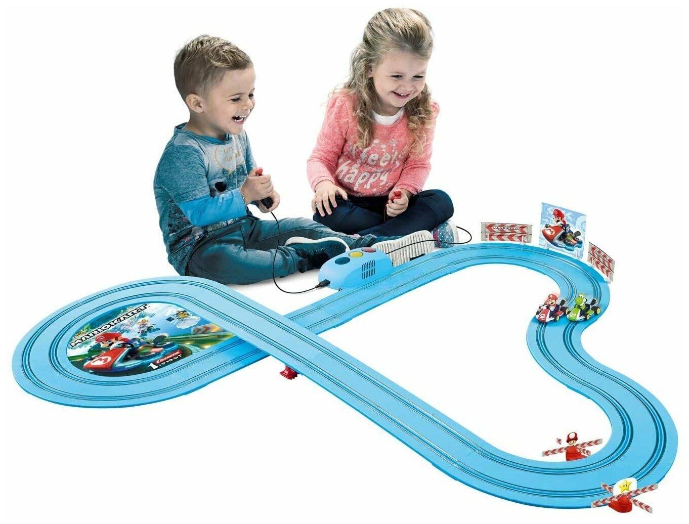 Лучшие цены. Захватывающая гонка с любимыми героями Mario Kart для самых юных гонщиков Соревнуйтесь с Марио и его другом Йоши на синей трассе Carrera FIRST. Встроенный динамик, воспроизводящий все ваши любимые звуки из игры Mario Kart одним нажатием кнопки, позволит вам почувствовать себя одним из членов команды. Интерактивные игровые функции останавливают Марио и Йоши на их пути. Только после нажатия правильной кнопки Марио и Йоши снова наберут скорость. Carrera FIRST — больше, чем просто игровой набор. Магазины в вашем городе.