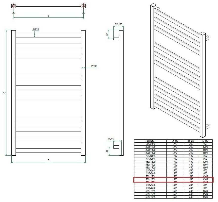 | Габариты (ШхВхГ) | 530x1500x100 мм / вес — 10.9 кг / |