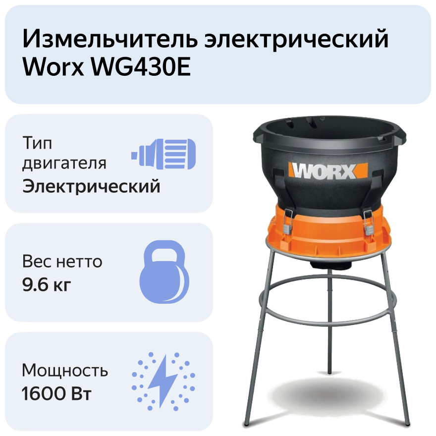 Измельчитель для листьев электрический Worx WG430E, мощность 1600 Вт, производительность 12 м3/ч