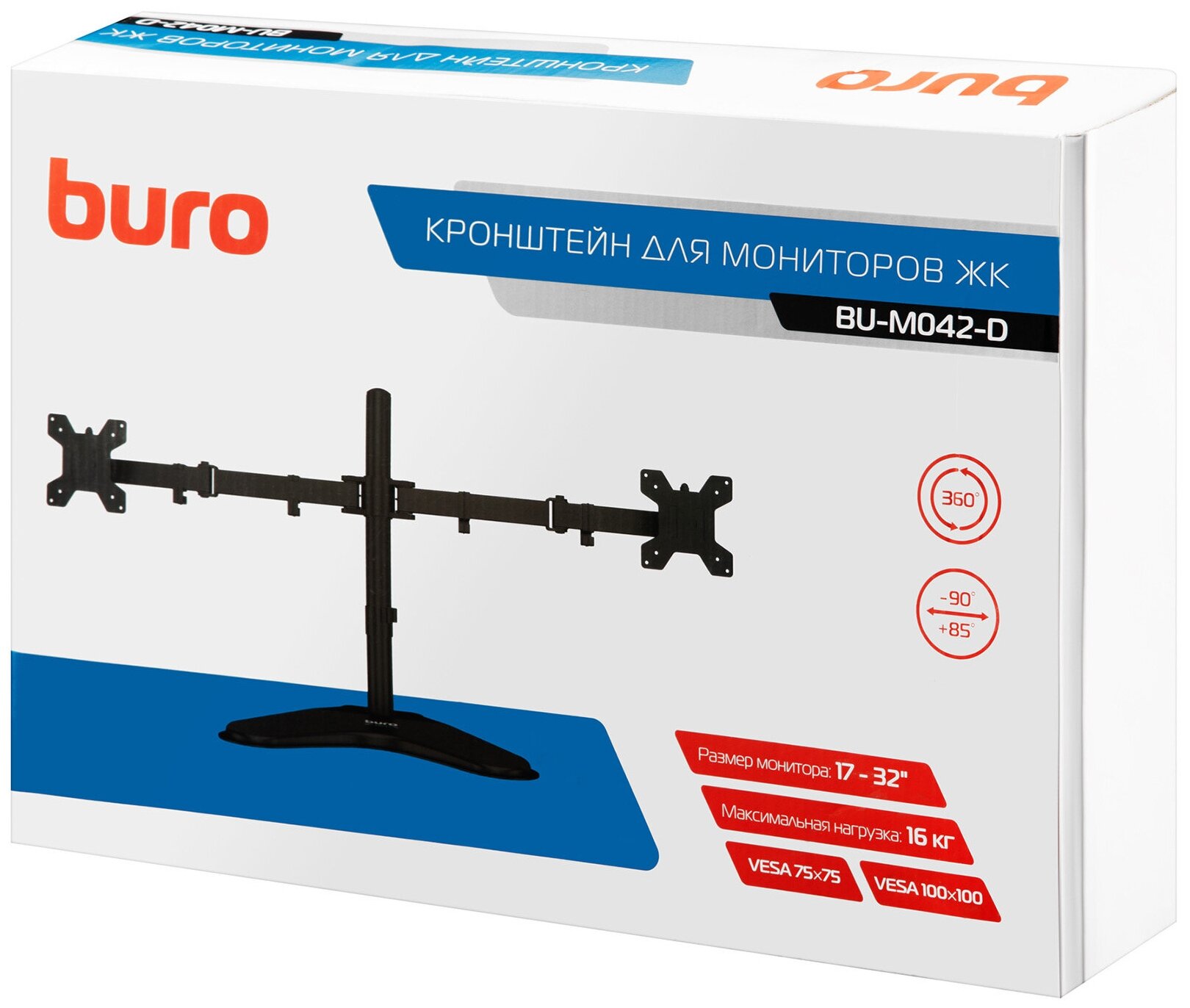 Кронштейн для мониторов ЖК Buro BU-M042-D черный 17"-32" максимум 16кг настольный поворот и наклон верт.перемещ.