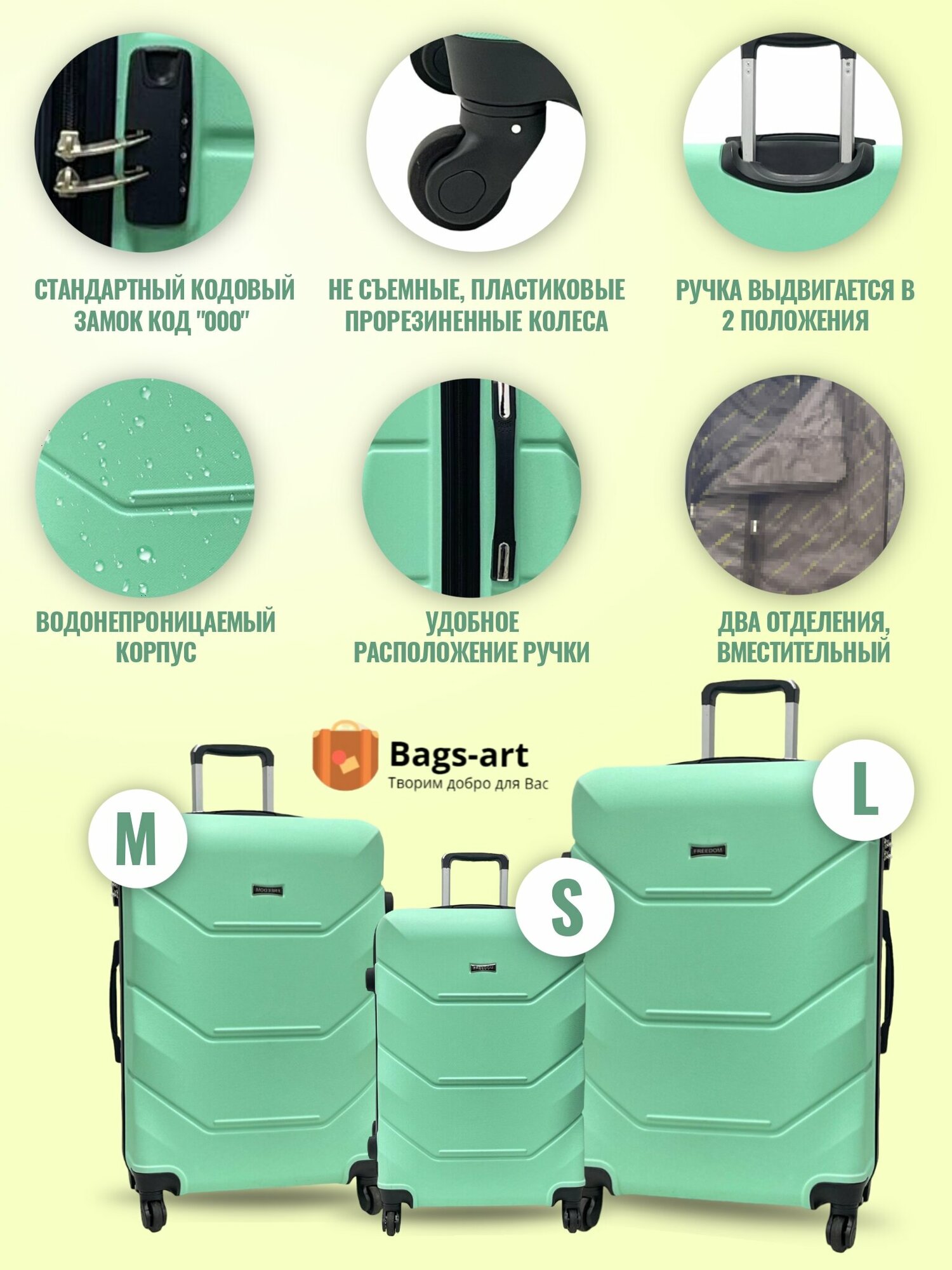 Чемодан на колесах для путешествий отпуска и отдыха маленького размера, Freedom S ручная кладь пластиковый ABS поликарбонат женский и мужской11