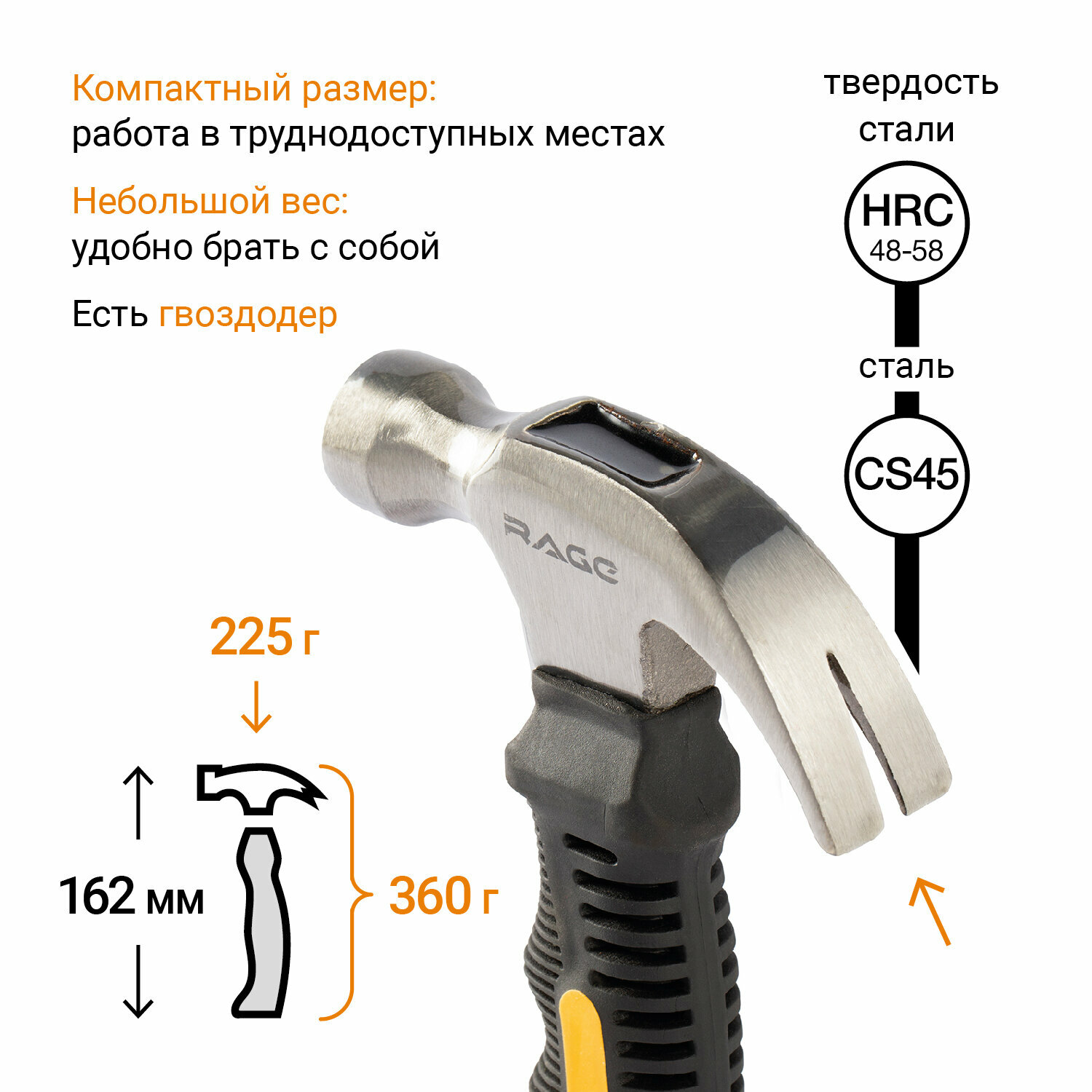 RAGE By VIRA Молоток-гвоздодер укороченный с фибергласовой рукояткой, 225г 900032 1 220 ₽ Подробнее