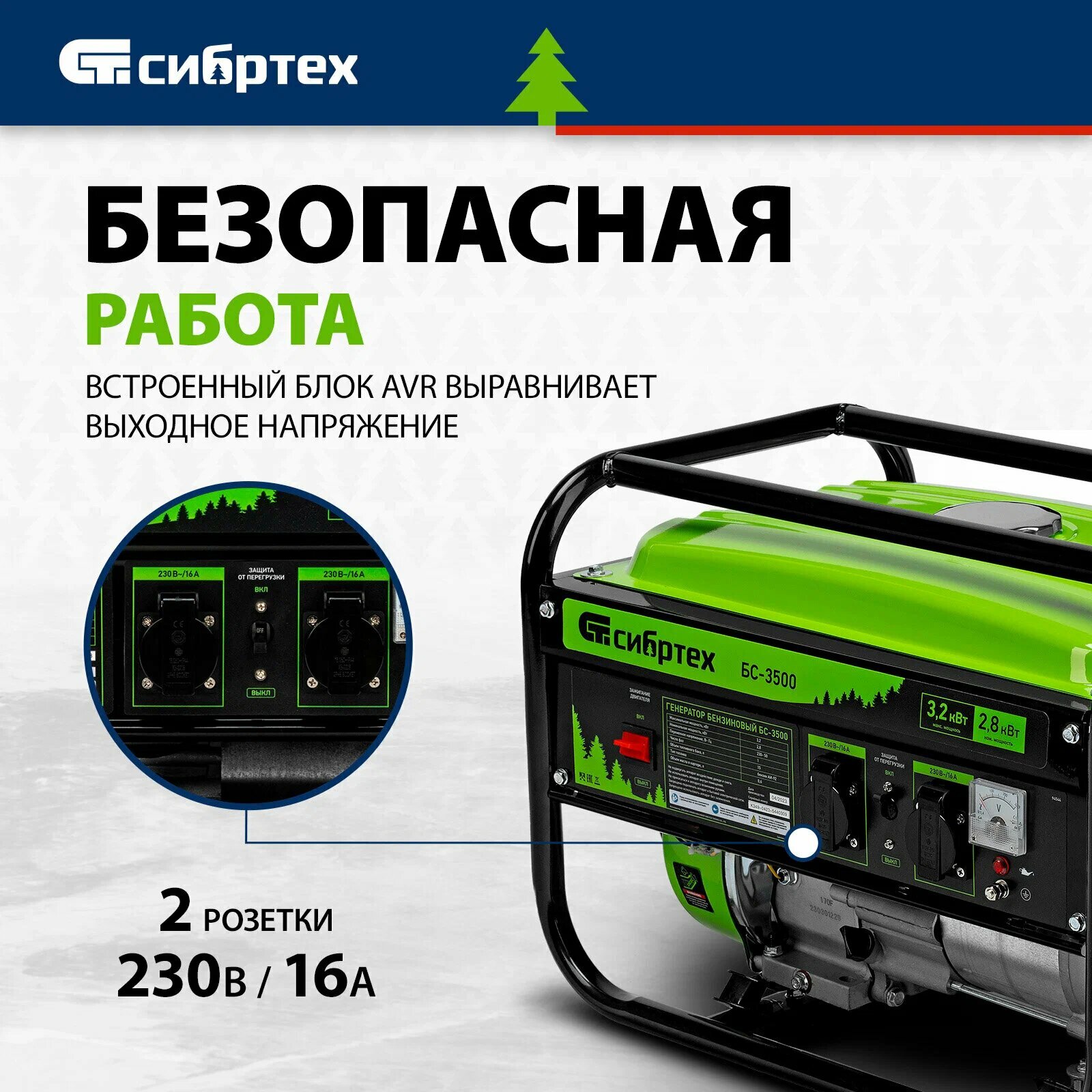 Бензиновый генератор Сибртех БС-3500, (3200 Вт)