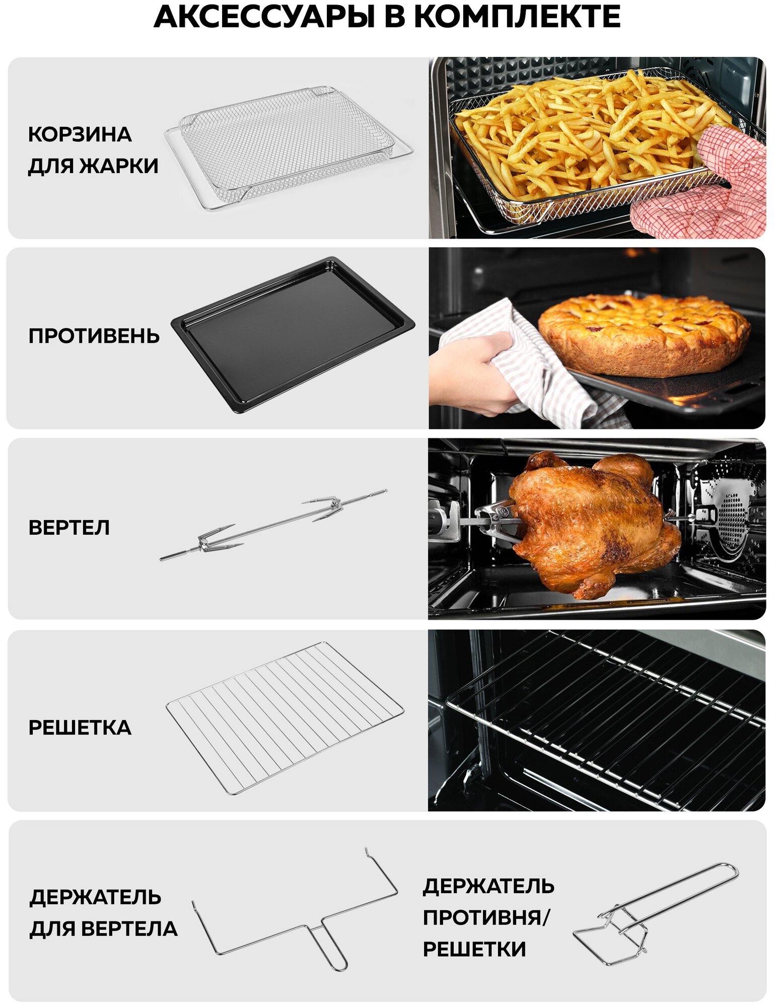GFGRIL Многофункциональная мини-печь GFO-34, 1 600 Вт, корзина для жарки, мини печь с конвекцией и грилем; духовой шкаф, духовка электрическая 8 290 ₽ Подробнее