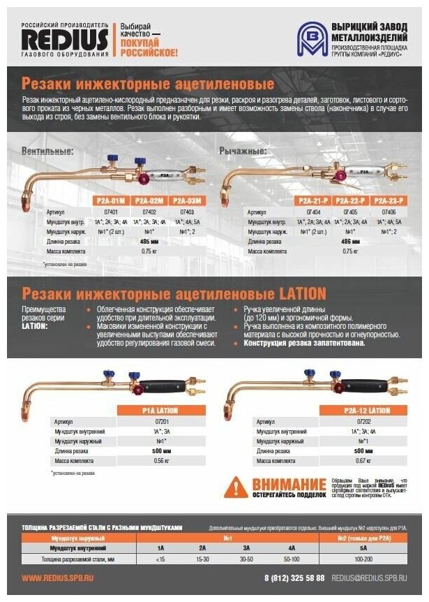 Резак ацетиленовый Р2А-01М (до 100 мм, ф 9 мм) (ООО "редиус 168") (инжекторный) (07401)