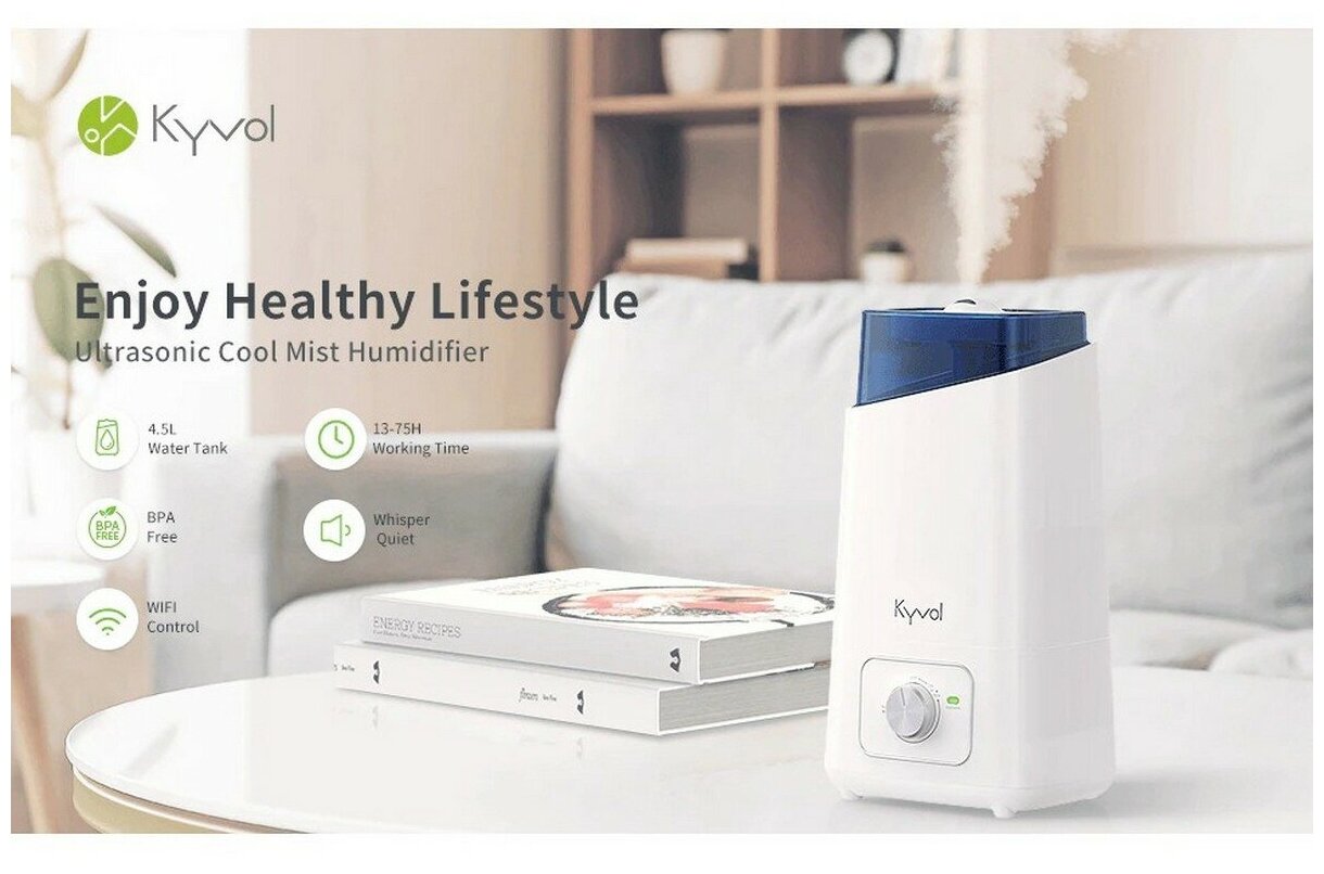 Лучшие цены. Увлажнитель воздуха Kyvol Ultrasonic Cool Mist Humidifier (EA200 (Wi-Fi) Blue/White), белый. Ультразвуковой увлажнитель воздуха Kyvol имеет объем 4,5 литра и индикатор уроня воды. Управляйте увлажнителем с помощью смартфона или голосовых помощников от Google, Mail.ru и Yandex. Особенности- Умный увлажнитель воздуха Kyvol EA200 подходит для помещений 20-40 кв. м. (спален, офисов, детских комнат, мини-садов внутри дома и т. д.). С полностью заполненным резервуаром (4,5 литров воды). Магазины в вашем городе.