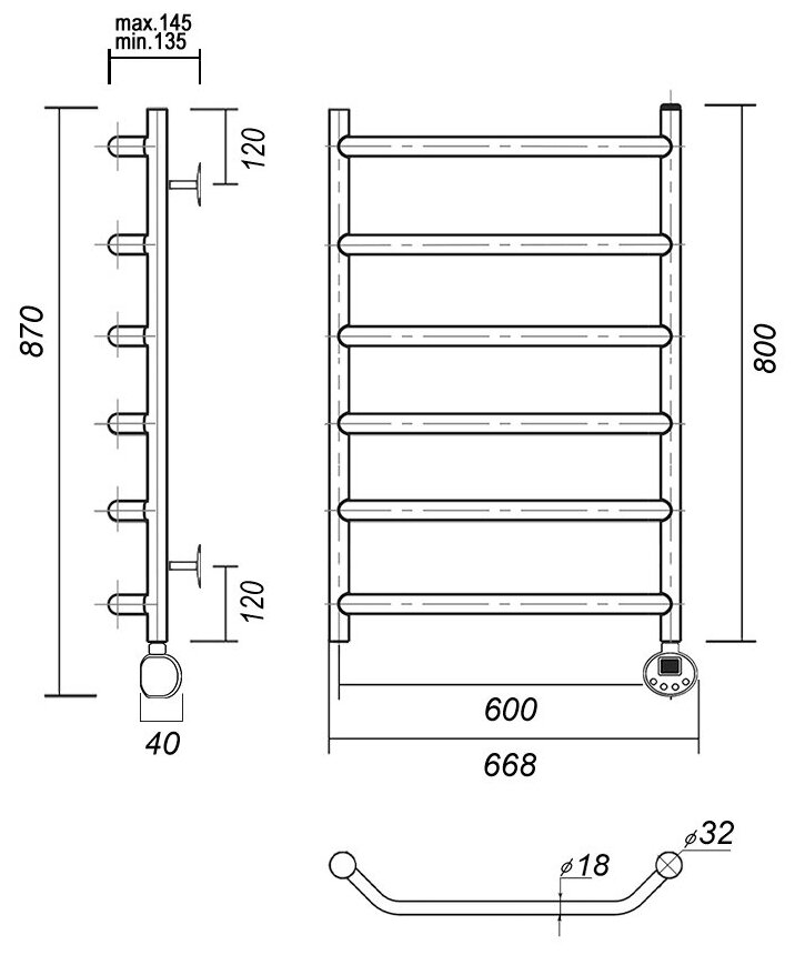 Лучшие цены. Полотенцесушитель электрический Domoterm Лаура П6 60x80, хром, R Особенности Габариты (ш. в. г.): 60x80x10.8 Электрический Подключается к электрической сети через кабель с вилкой Мощность: 300 Вт Имеет выключатель на корпусе для удобства отключения электропитания Встроенный терморегулятор позволяет выбрать максимально комфортную температуру Функция отключения при нагреве позволяет значительно экономить электроэнергию Подключение справа В качестве теплоносителя используется антифриз Нержавеющая сталь. Магазины в вашем городе.