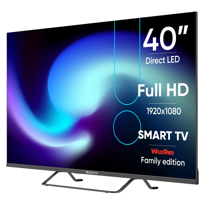 Телевизор Topdevice 40" TDTV40BS04F_ML FRAMELESS, FHD 1080p, Smart TV WildRed, графит