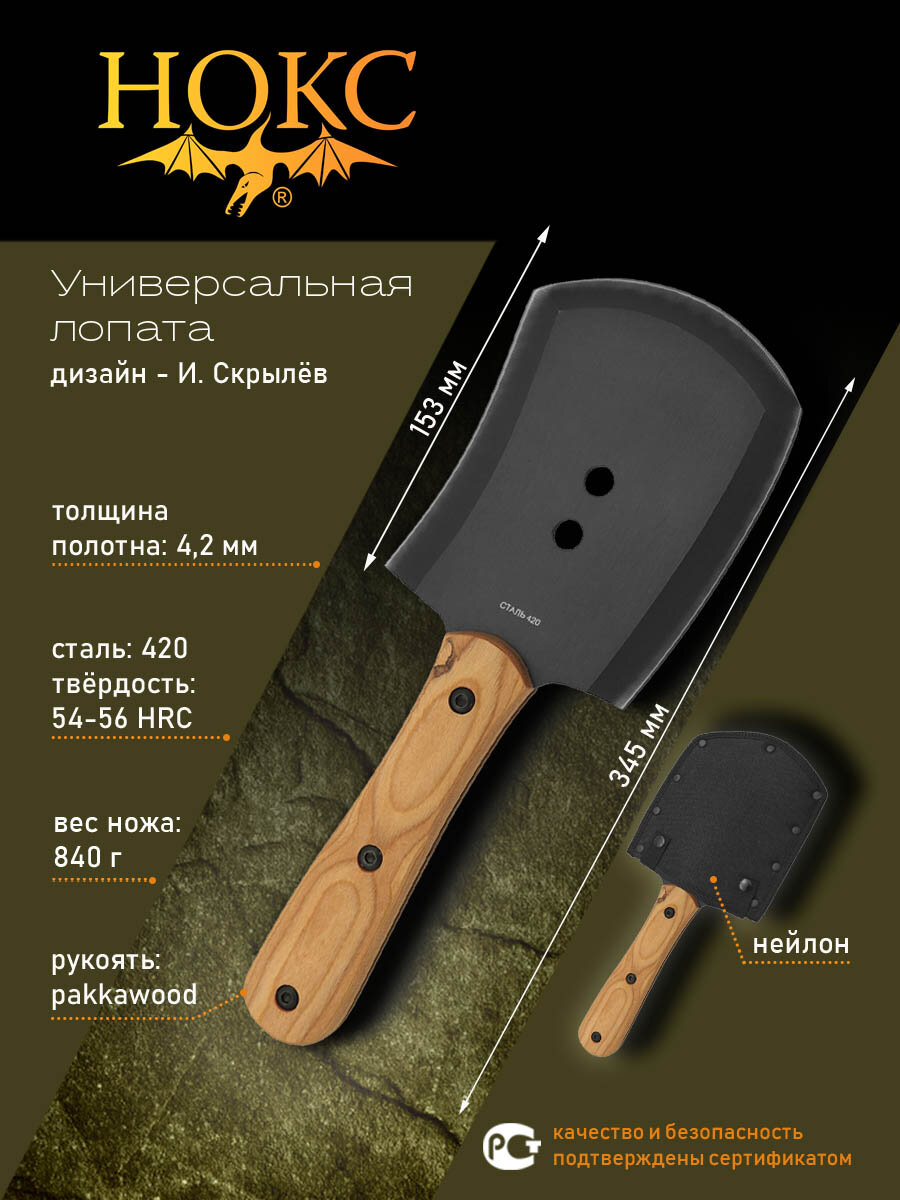 Лопата Нож нокс Сапер-Т 2 (903-670321) , лопатка универсальная, сталь 420