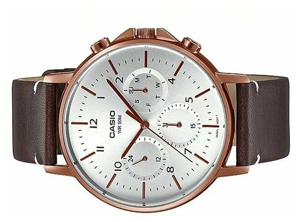 Лучшие цены. Мужские кварцевые часы в круглом стальном корпусе на кожаном ремешке. Японская компания «Casio» известна созданием портативной электронной и вычислительной техники. В производстве часов «Casio» славится надежным качеством часовых механизмов, производимых, в основном, в Японии, разнообразием встроенных функций, а также широким ассортиментом с четко обозначенными модельными рядами, помогающими покупателю выбрать нужные часы. Магазины в вашем городе.