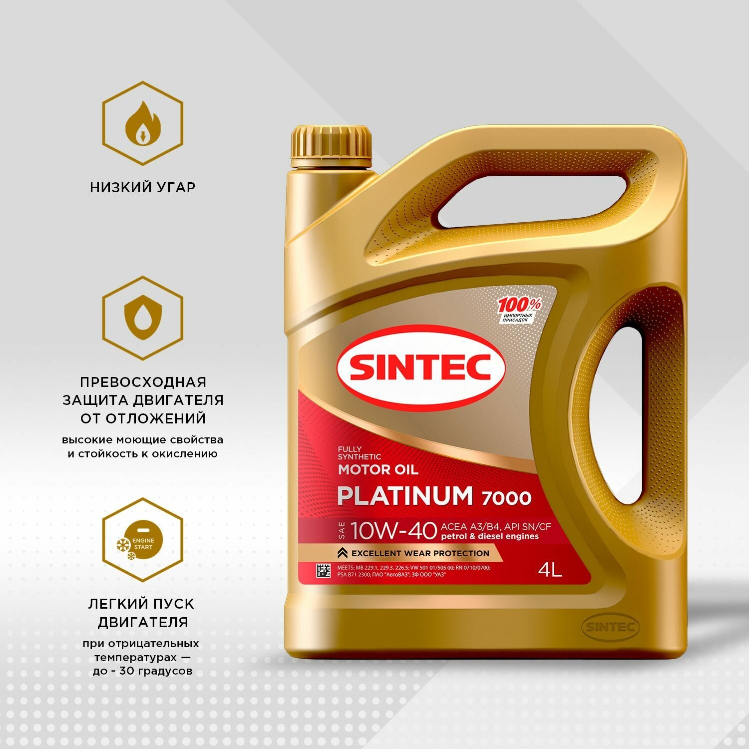 Sintec PLATINUM 7000 10W-40 SN/CF A3/B3, А3/В4 1л синтетика (600166/999858)
