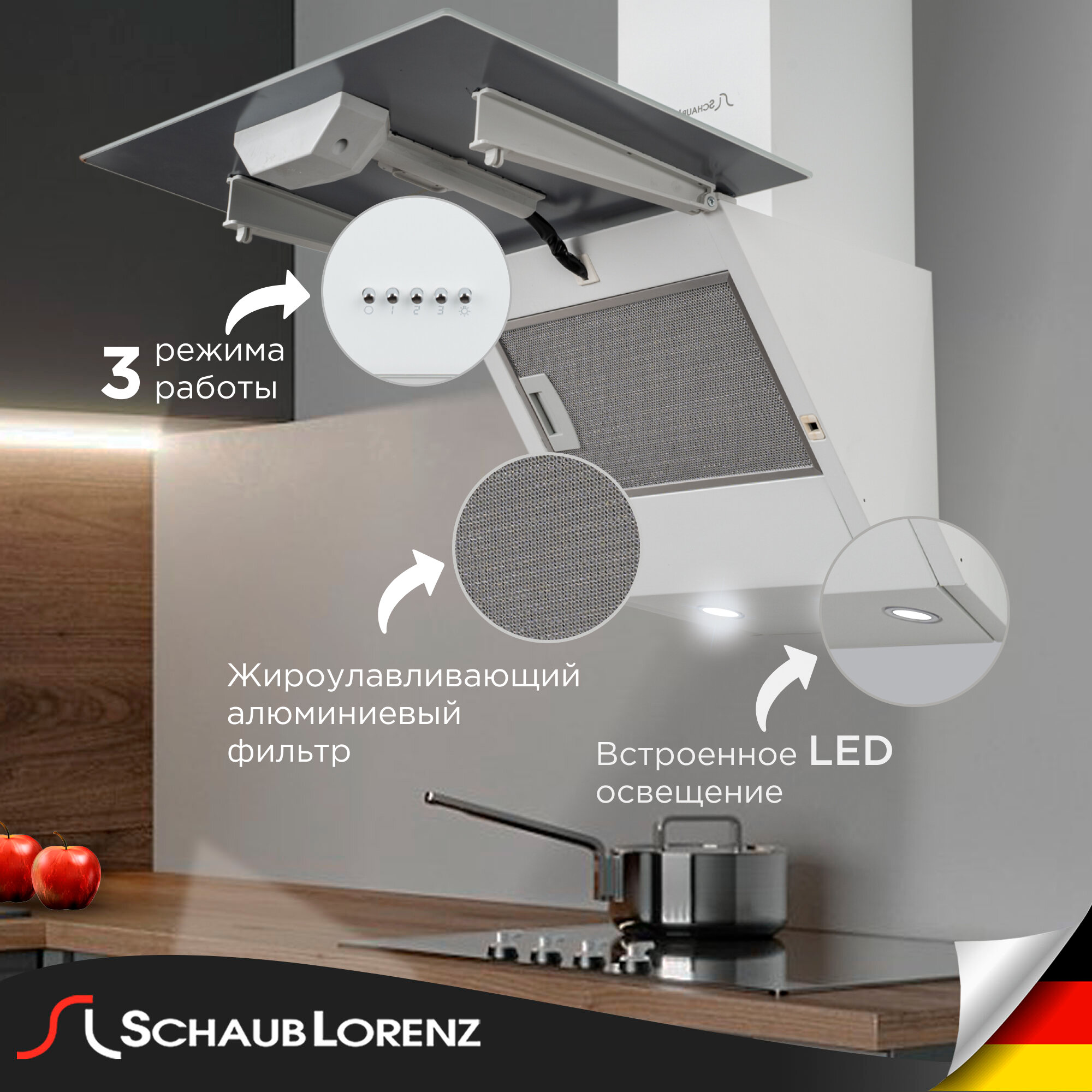 Вытяжки Вытяжка кухонная наклонная Schaub Lorenz SLD DL5410, 50см, 700 м3/ч, 3 скорости, компактная, белая