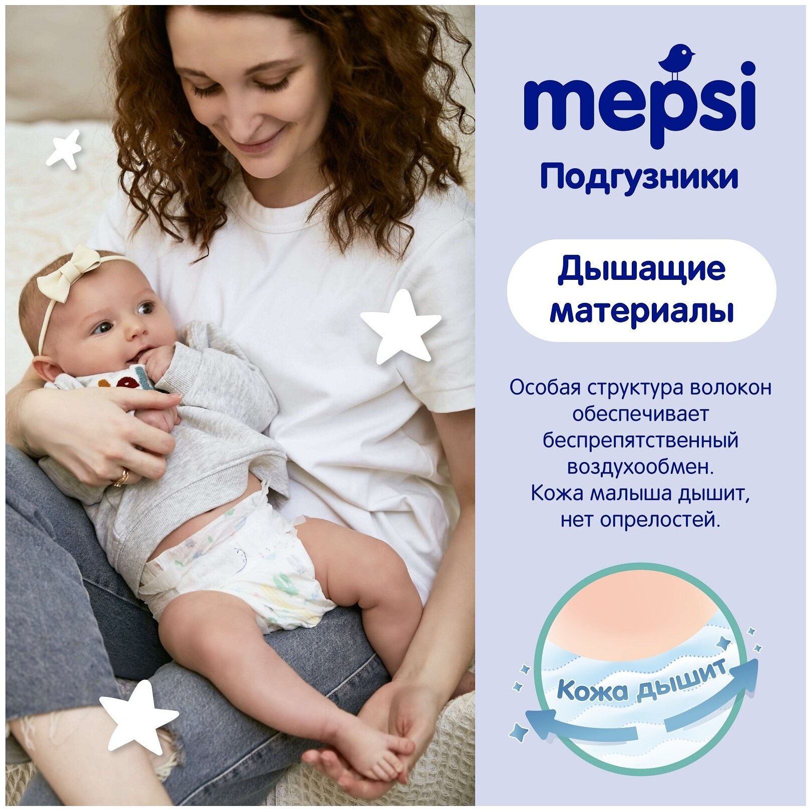 Подгузники MEPSI детские 2 размер, S (4-9 кг), 27 шт. Подгузники для девочек, для мальчиков.