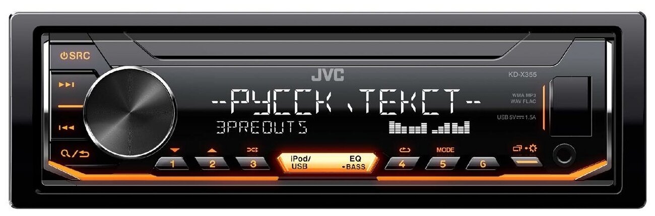 Автомагнитола JVC KD-X355 / Multi Color, USB, FLAC, 3RCA, 13-полосный графический эквалайзер. K2 тех