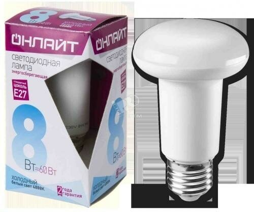 Лампа светодиодная онлайт 71654, E27, R63, 8 Вт, 4000 К