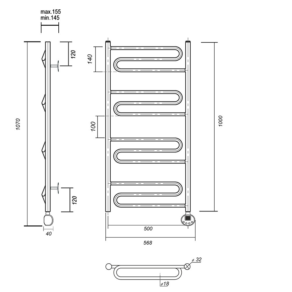 Полотенцесушитель электрический Domoterm Офелия П12 500*1000 ER справа, хром