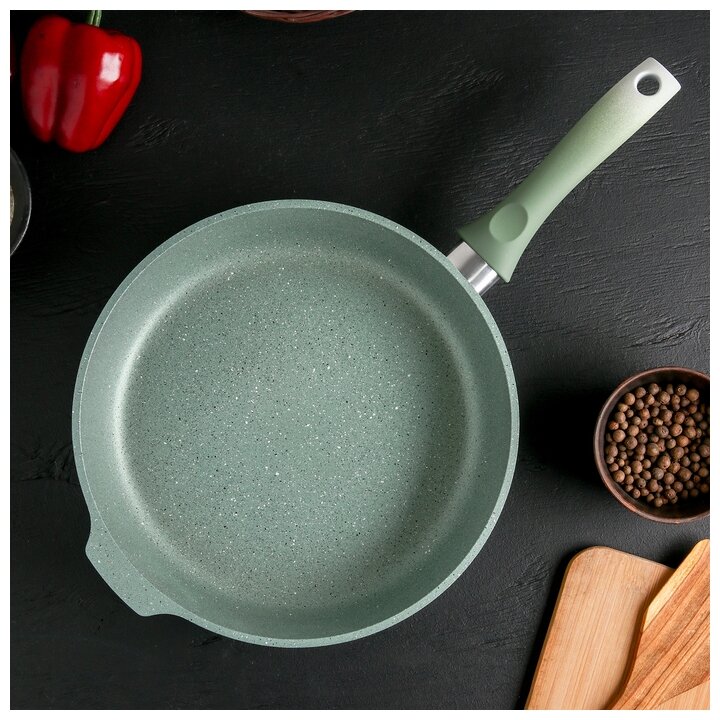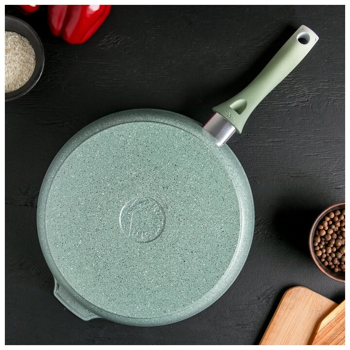 Сковорода 28*6,5см с ручкой, АП фисташковый мрамор смф281а