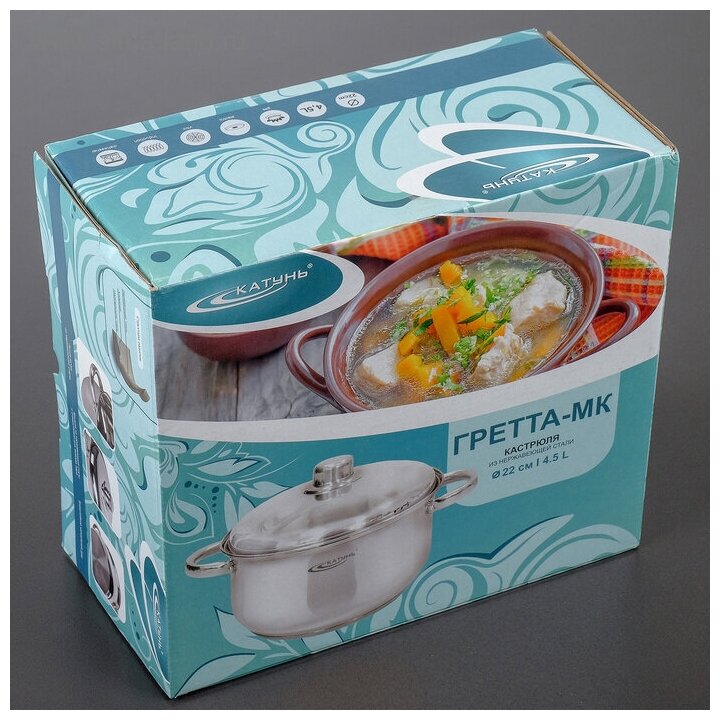Кастрюля 5,7 л катунь, гретта, KT04-D-53, нерж.сталь, зеркальная полировка