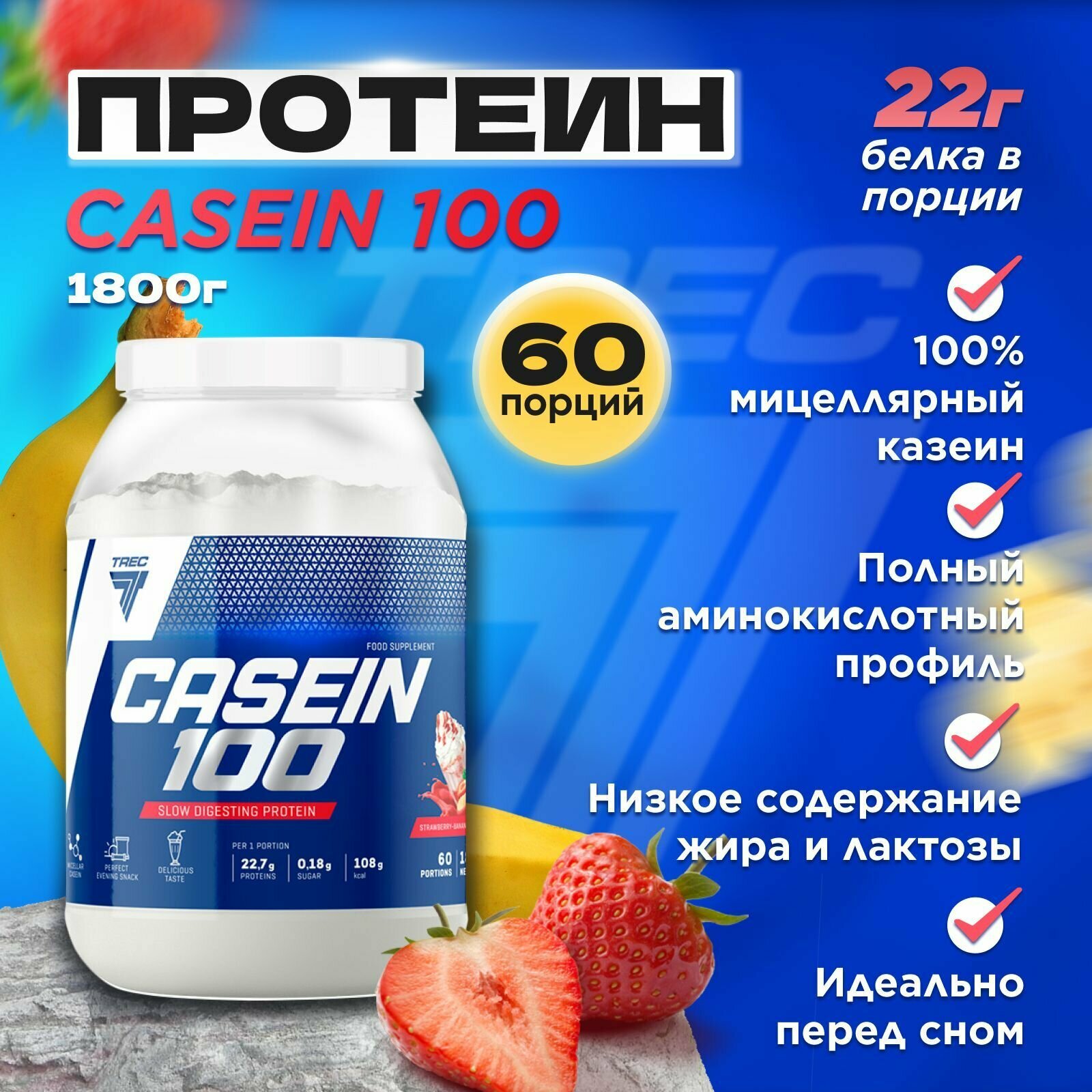 Протеин Trec Nutrition Casein 100, 1800 г, вкус: клубника-банан