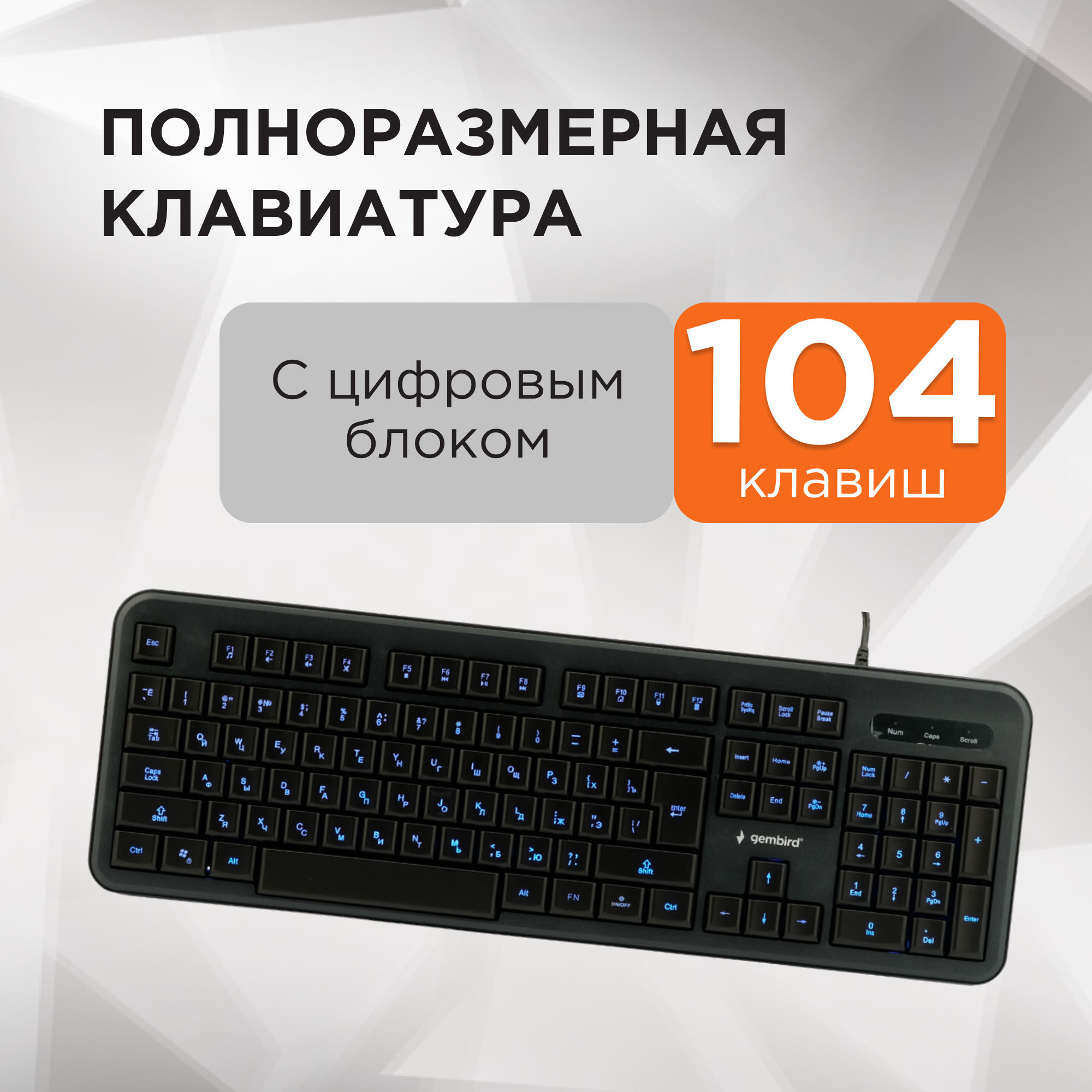Клавиатуры Клавиатура Gembird KB-200L 104кл. стандартная, подсветка символов белая, кабель 1.45 метра, чёрная