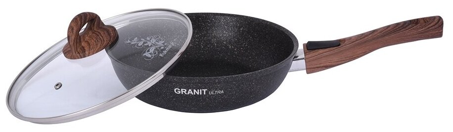 KUKMARA Сковорода Granit ultra, d=26 см, стеклянная крышка, съёмная ручка, антипригарное покрытие