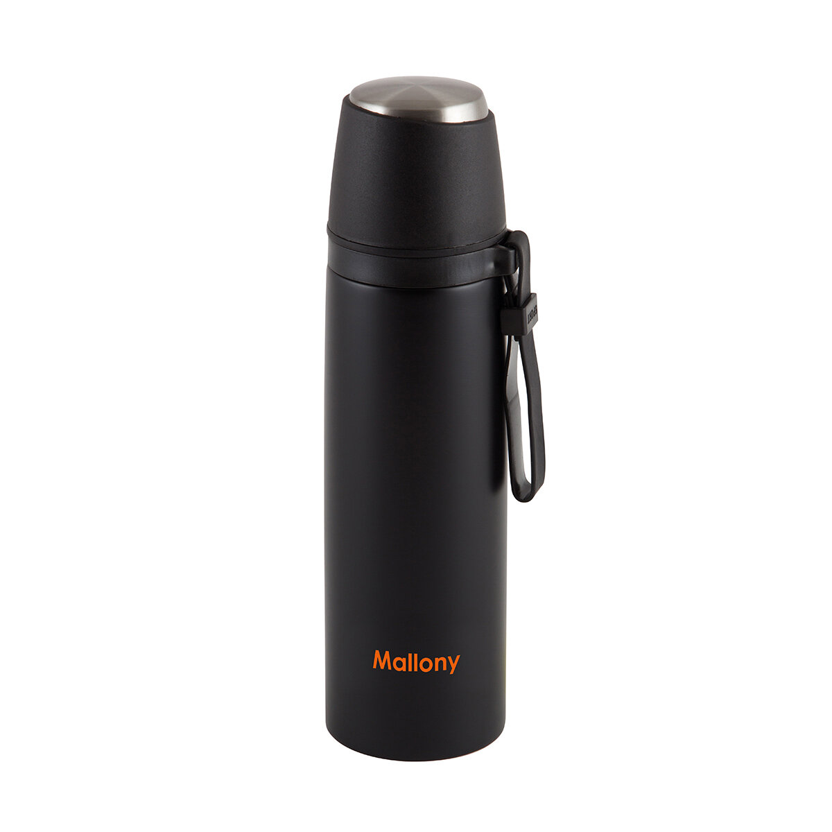 Термос Mallony NERO 005242, с крышкой-чашкой, с ремешком, 0,5л, нержавеющая сталь