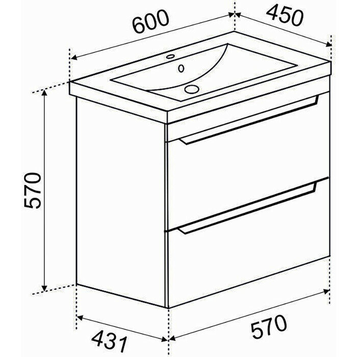 Тумбы под умывальник Тумба Стоун 60 подвесная 2 ящика без раковины Como 60