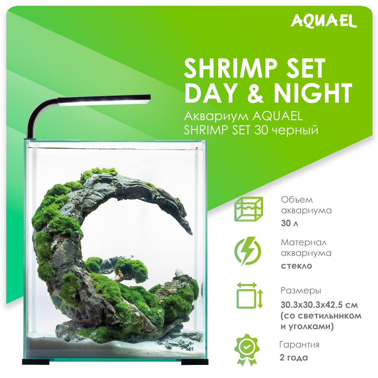 Аквариум Aквариум AQUAEL SHRIMP SET DAY&NIGHT 30 черный (30 л), с оборудованием