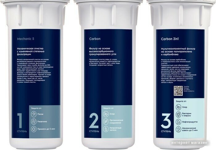 | Виды фильтрации | коллоидное железо (ржавчина) / соли жесткости (накипь) / ионы тяжелых металлов / нитраты / пестициды / нефтепродукты |