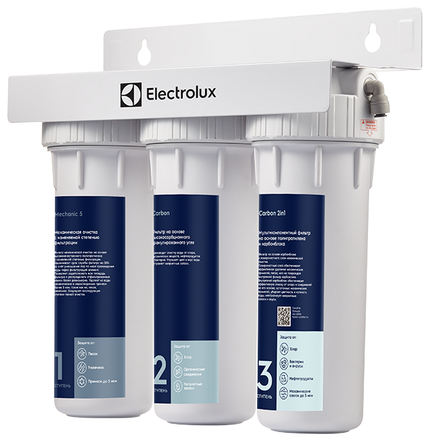 Лучшие цены. Артикул: Kit AM Carbon 2in1 Prof Бренд: Electrolux Гарантийный срок: 1 мес Страна производства: КНР Серия: Kit AM Количество ступеней фильтрации: 3 Область применения: Водоснабжение Макс. температура воды: 38 Применение и соответствие: для очистки воды Ресурс фильтра: 10000 Степень очистки: 5 Типоразмер фильтра: SL 10 (Slim line) Удаление механических загрязнений: Да Удаление органических веществ: Да Удаление хлора: Да Устранение привкусов и запахов: Да Цвет корпуса картриджей: Белый Умягчение воды: Нет. Магазины в вашем городе.
