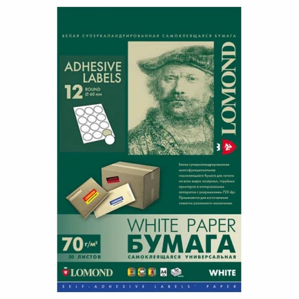 Самоклеящаяся бумага LOMOND универсальная для этикеток, A4, 12 делен. (D60мм), 70 г/м2, 50 листов