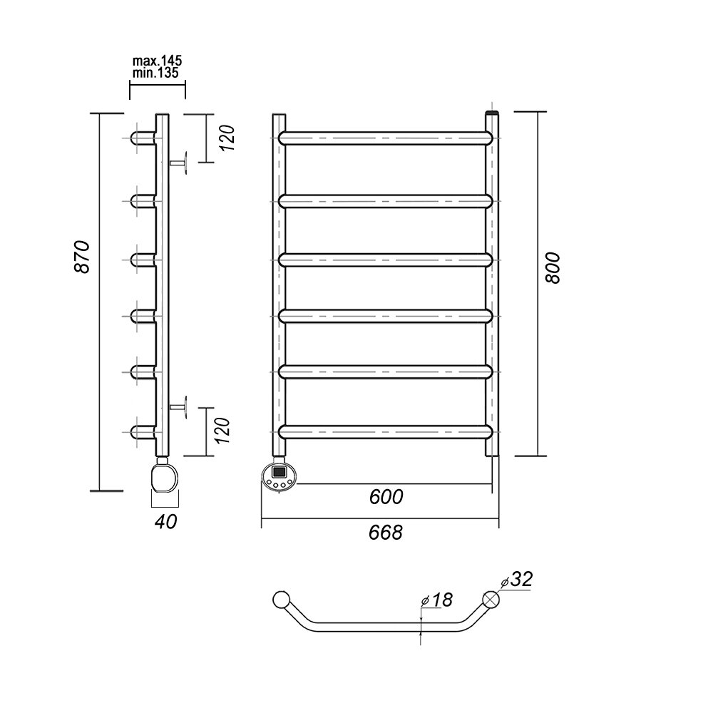 Полотенцесушитель Полотенцесушитель электрический Domoterm Лаура П6 60x80 EL