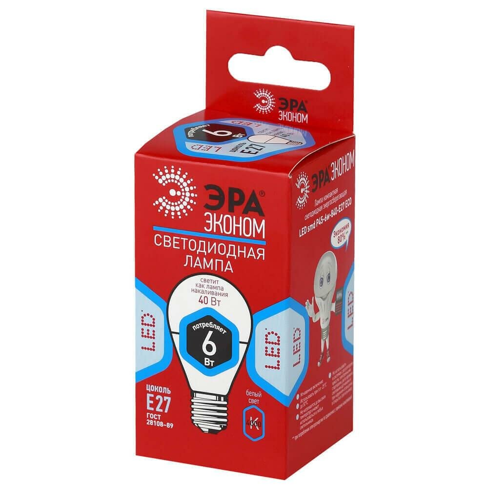 Лампочки ЭРА Лампа светодиодная ЭРА E27 6W 4000K матовая ECO LED P45-6W-840-E27 Б0020630