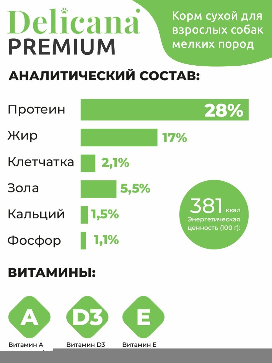 DELICANA Premium Сухой корм для собак мелких пород, курица с овощами, 1,5 кг 1 734 ₽ Подробнее