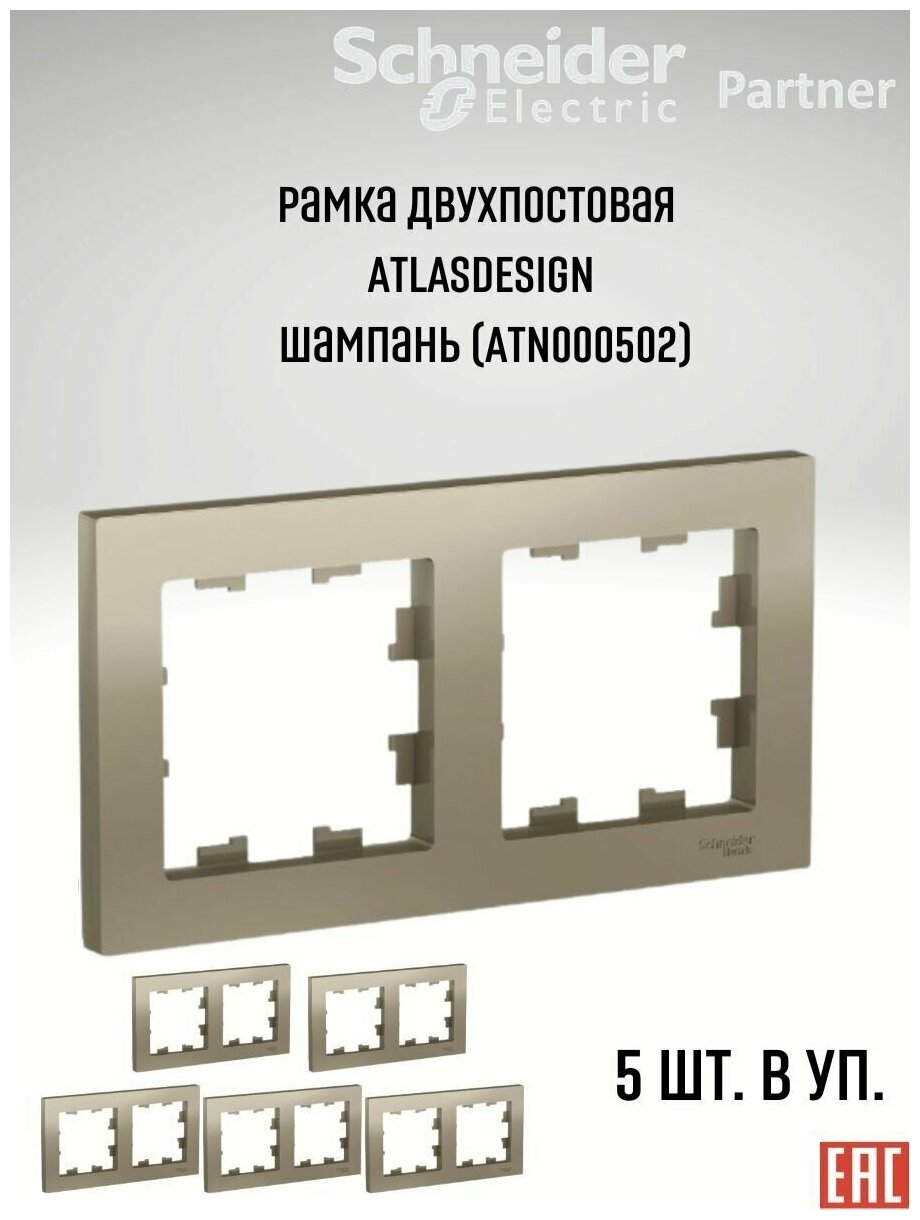 Розетки Рамка 2-постовая шампань, Schneider Electric AtlasDesign (комплект 5шт)