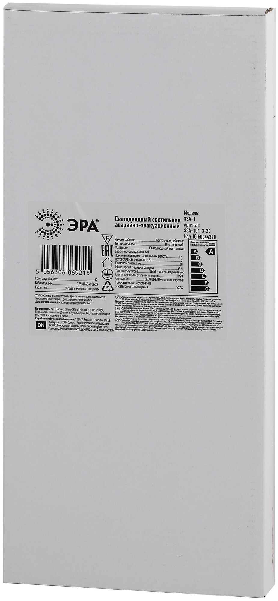 Прожектор / светильник Аварийный светильник ЭРА SSA-101-3-20 светодиодный 3ч 3Вт ВЫХОД-EXIT-ЧЕЛОВЕК-стрелка