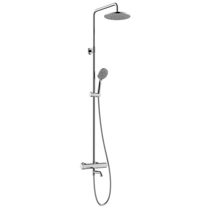 Лучшие цены. Выдвижная телескопическая стойка(нерж. сталь, хром): высота функциональная 908 -1138мм , диаметр 25мм ,вылет верхнего душа 350мм ,держатель лейки плавающий FightFix Лейка верхнего душа(ABS-пластик,хром) : на подвижном шарнире, диаметр 220мм, Форсунки Self-Clean Device, Eco system Ручная лейка: диаметр 110мм, 5 режимов, Форсунки Self-Clean Device, Eco system Термостатный смеситель с поворотным изливом: картридж двухконтурный с переключателем (душ-излив в одной рукоятке). Магазины в вашем городе.