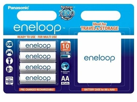 Аккумулятор ААА Eneloop Panasonic BK-4MCDEC4BE HR03-4BL 800мА/ч в блистере 4шт. + пластиковый футляр для хранения